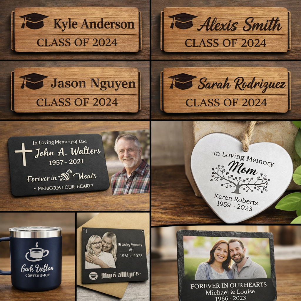 3D Prints, Laser engravings, Vinyl & DTF prints